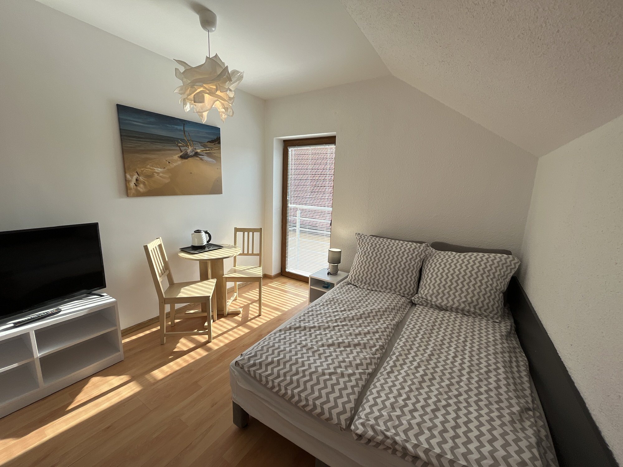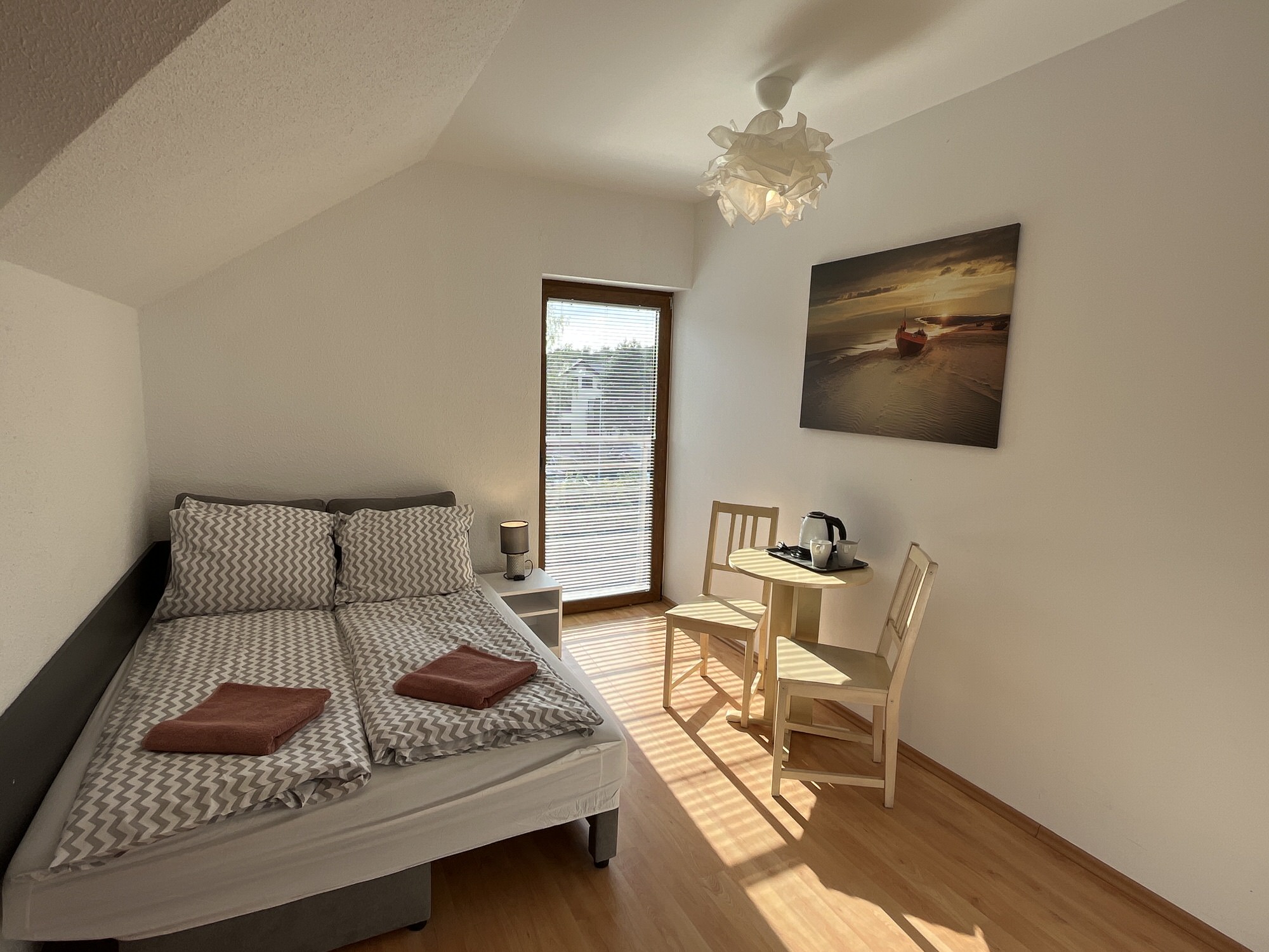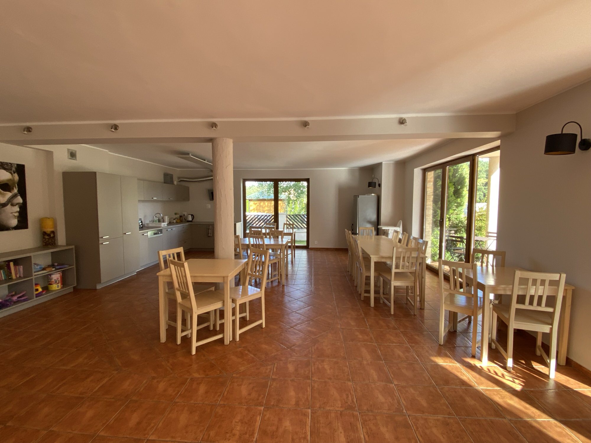 Dla naszych gości przygotowaliśmy nasłonecznione pokoje wyposażone w łóżka małżeńskie oraz 2 łóżka pojedyncze, bezprzewodowy internet, telewizor, czajnik bezprzewodowy, lodówka, suszarka na bieliznę.Pokoje są z dostępem do dużej ogólnodostępnej kuchni / jadalni (ponad 100 m2). Ponadto nasze pokoje oferują: